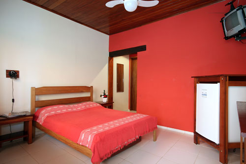 1 cama de casal, 1 beliche, TV, frigobar e ventilador de teto. (acomoda até 4 pessoas)