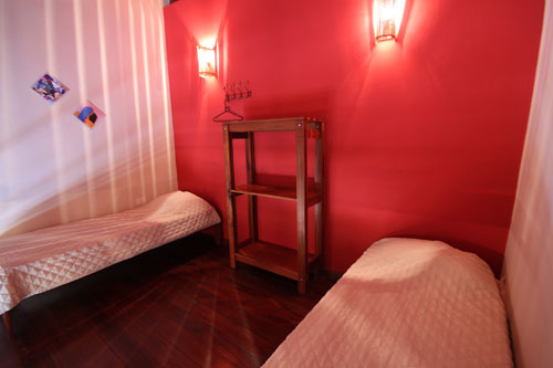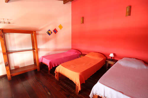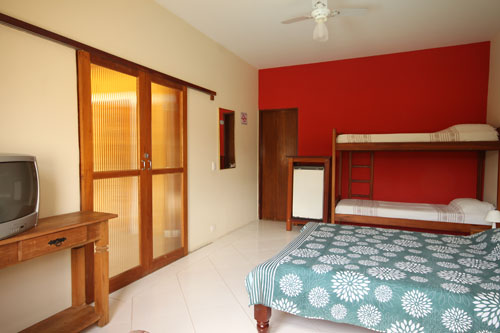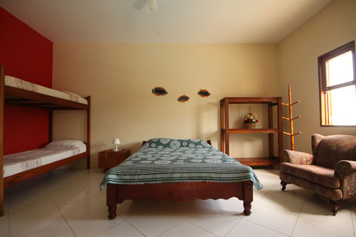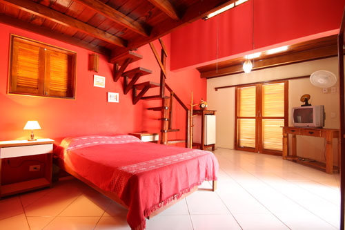 1 cama de casal, 2 camas de solteiro, 1 bi-cama, TV, frigobar e ventilador de teto. (acomoda até 5 pessoas)
